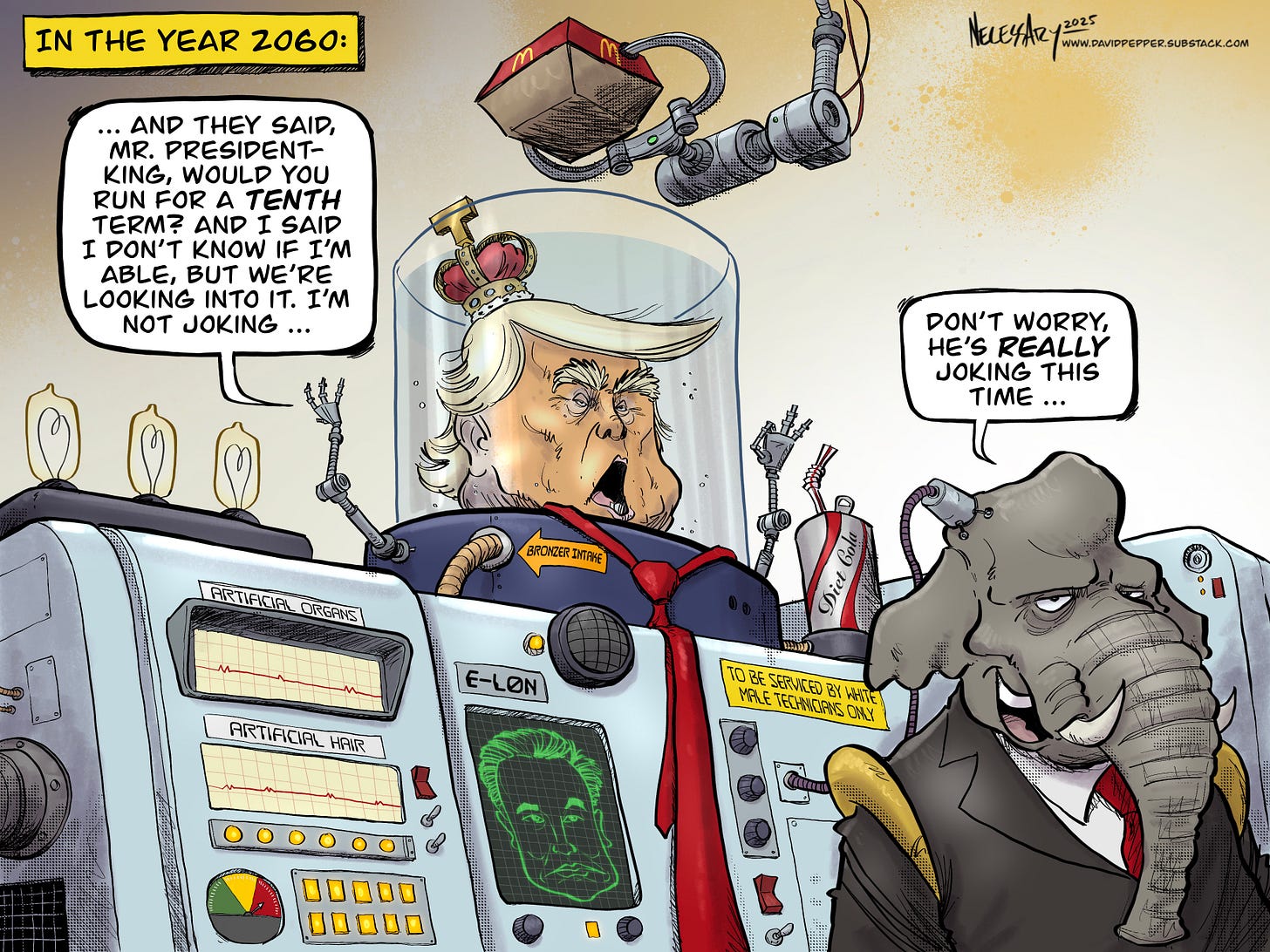 Donald Trump is openly talking about running for a third term as president. “But Mr. Cartoonist,” you might say, “isn’t that strictly prohibited by the Constitution? It’s against the law!”