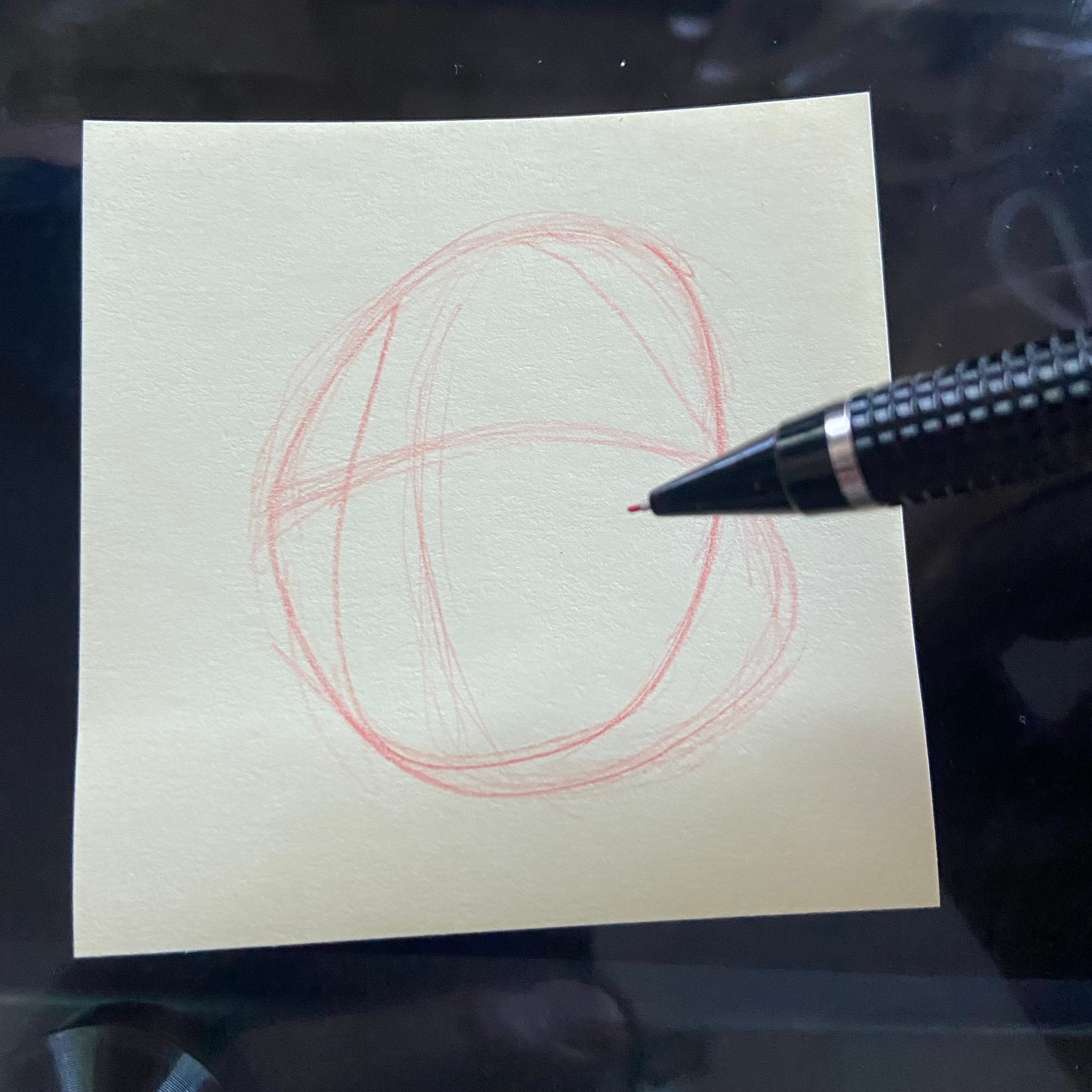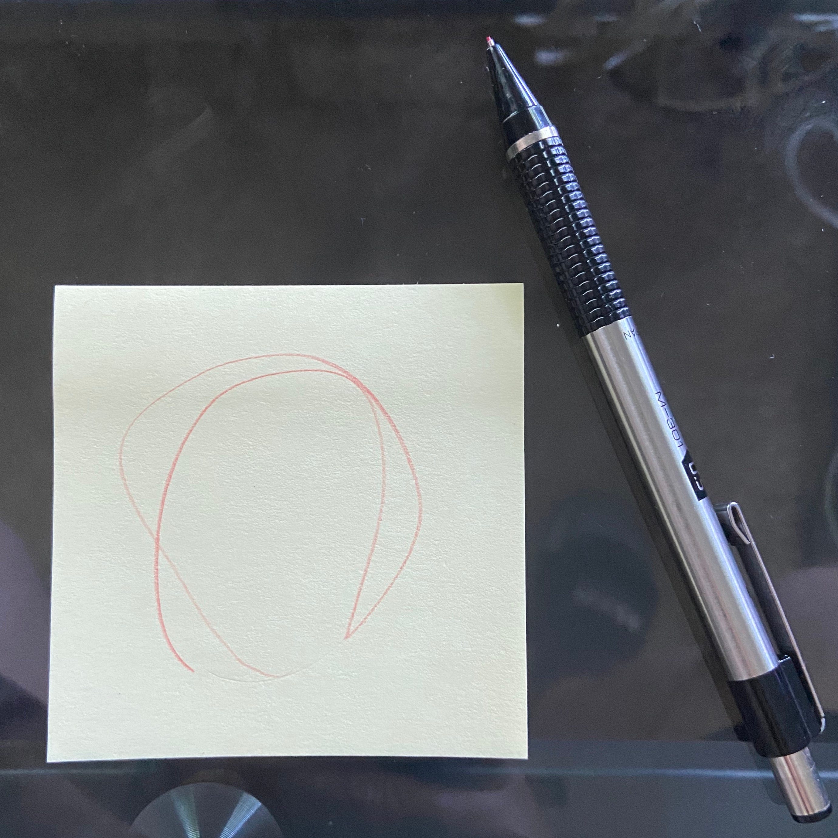 I then close my eyes, and using the pencil, I make a random scribble on a Post-it.