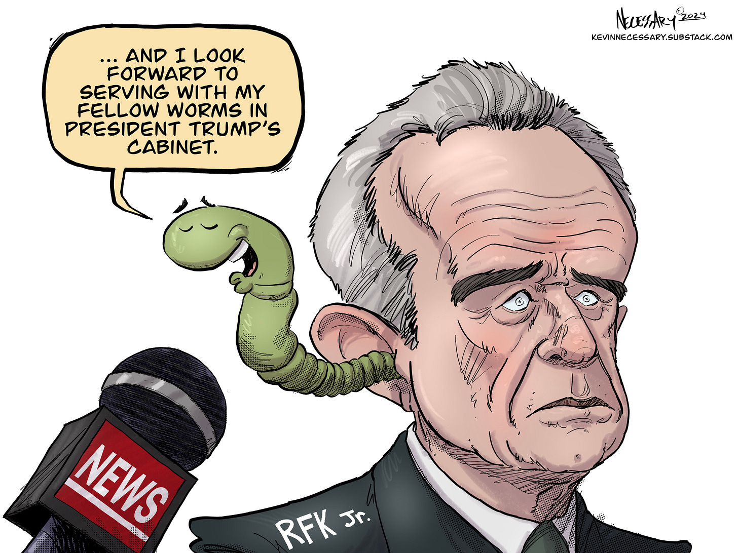 And so it begins. 45 is already stocking his potential cabinet with some of the lowest lifeforms around. While the worst of the bunch is, arguably, Matt Gaetz, 45’s pick for Attorney General — who allegedly committed statutory rape of a minor — I wanted to highlight the special insanity of having Robert F. Kennedy, Jr. potentially in charge of Health and Human Services. Besides his disavowing of nearly all medical science, RFK Jr. (and, I’m guessing, his brain worm) has mused about getting rid of mental health medications, including the use of stimulants for people with ADHD, and sending the erstwhile users of said medications to “wellness farms.” There, without access to phones or computers or tablets, the — patients? guests? inmates? — would spend a few years being “reparented,” farming organic foods instead of using the medications that actually help them.